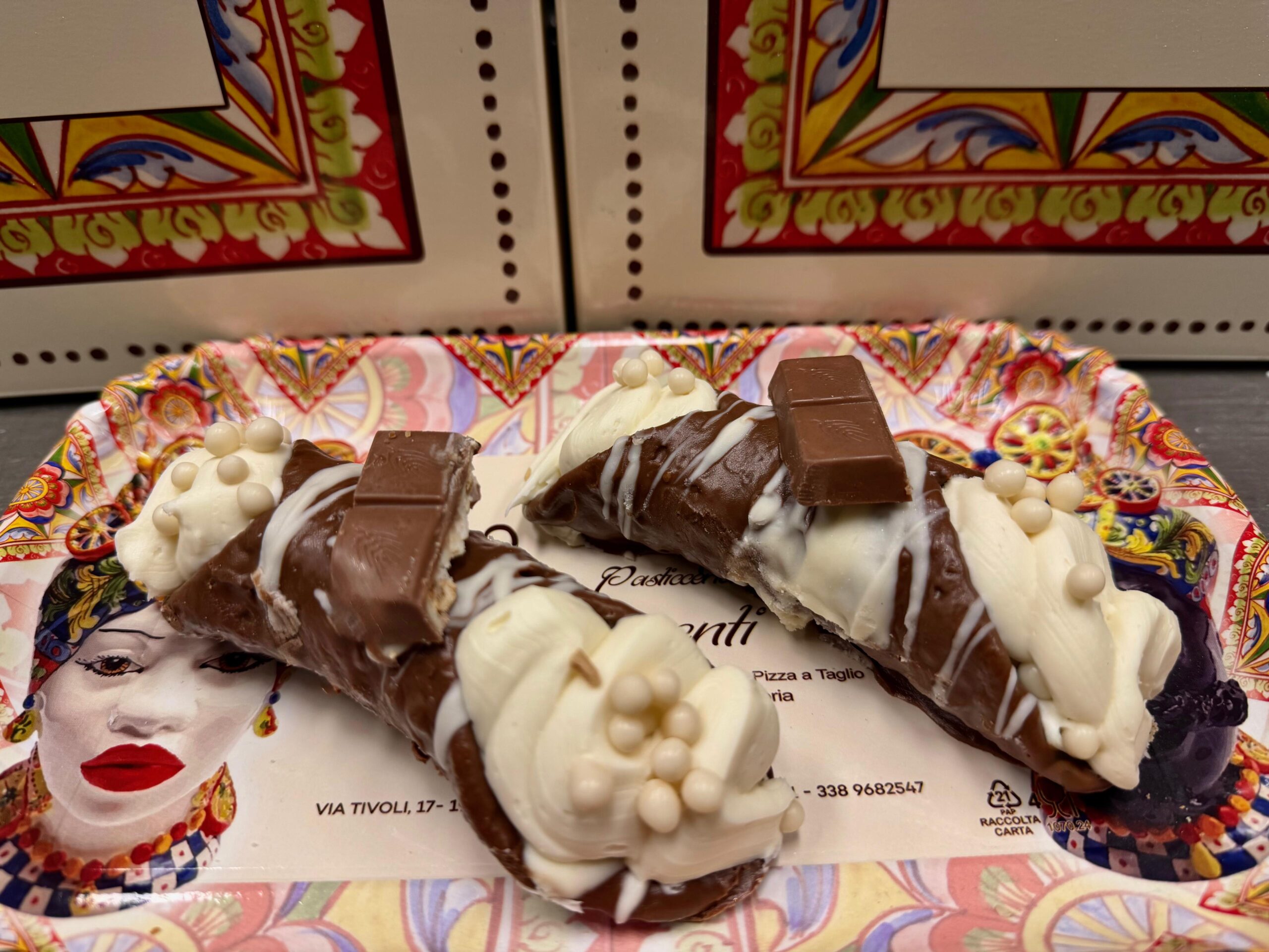 Realizzati con zucchero, strutto, uova, farina 00, Manitoba, limone, aceto rosso, aromi, vaniglia, cannella, con un ripieno di nutella bianca con cereali e una copertura cioccolato al latte.